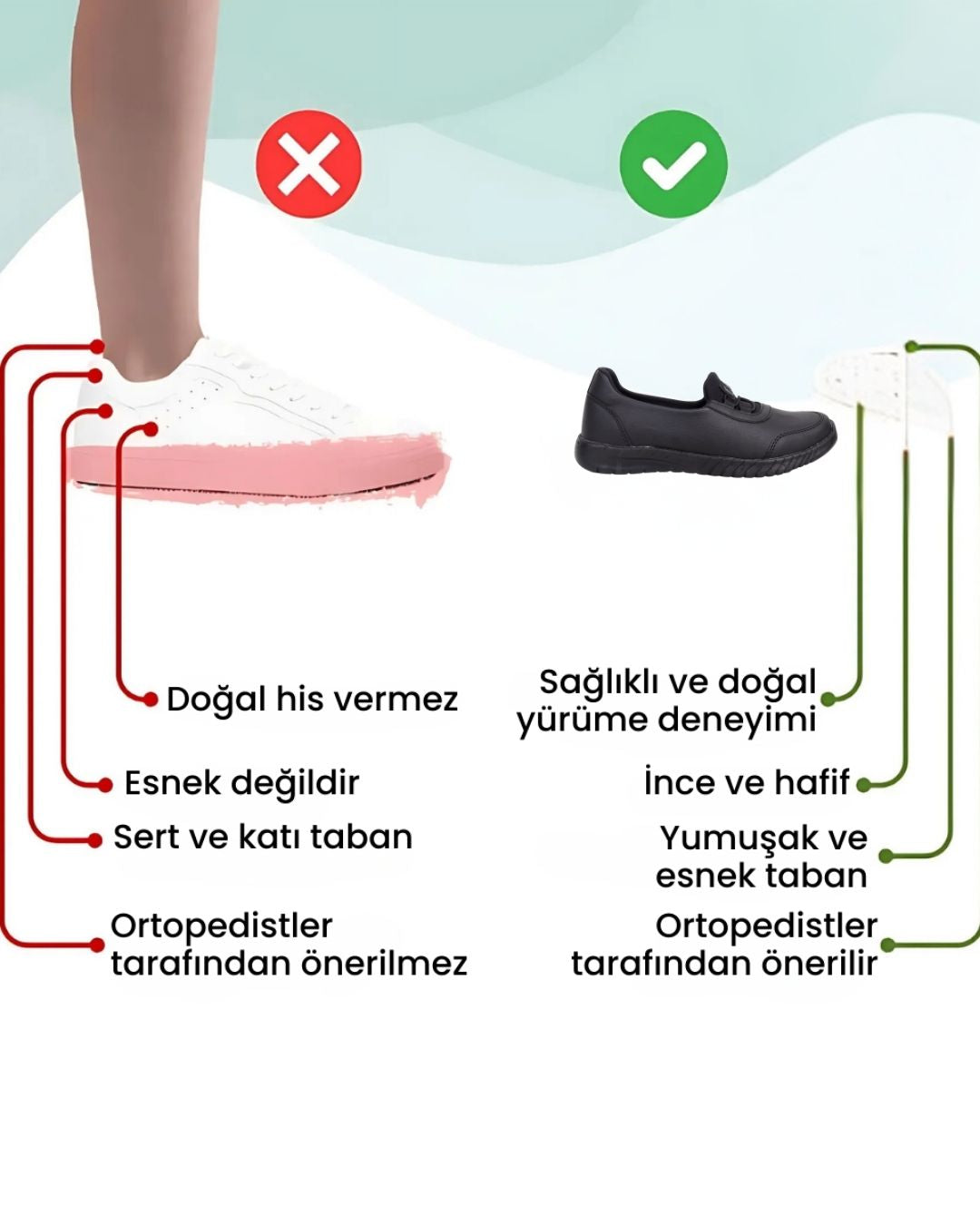 Özel geliştirilmiş ortopedik taban teknolojisi ile her adımda masaj etkisi yaratın. Topuk dikeni, düz tabanlık ve eklem ağrılarını hafifletmek için tasarlandı. Sağlığınız için en doğru adımı şimdi atın