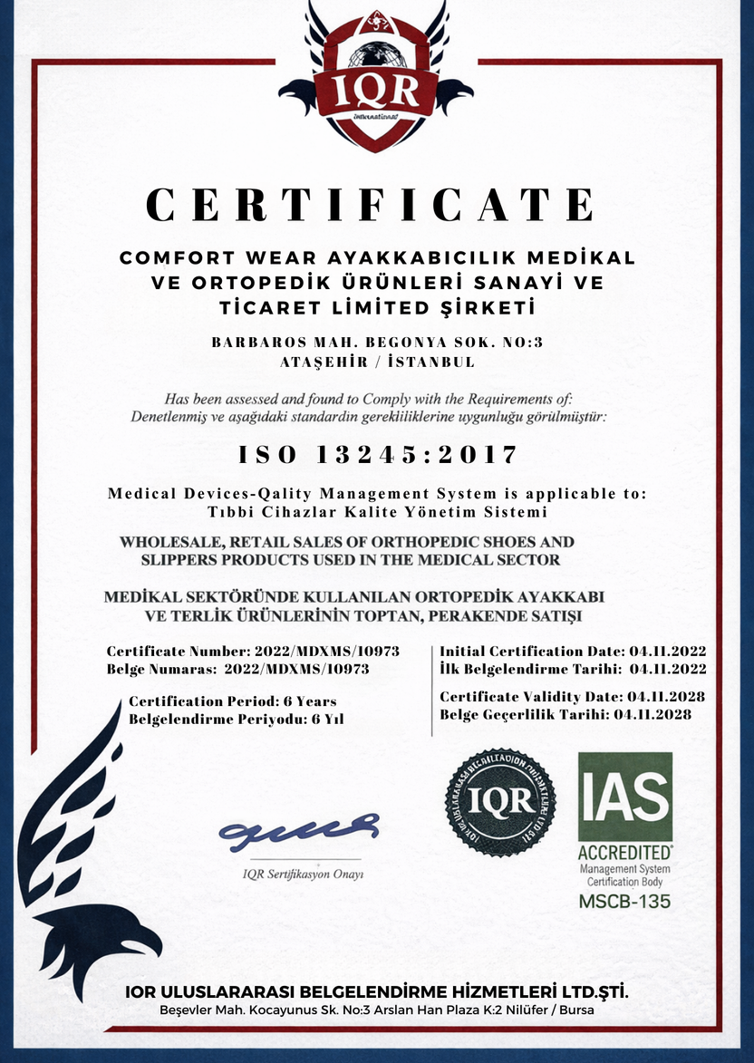 Comfort Wear ürünleri, uluslararası tıbbi cihaz kalite standartlarına uygun şekilde üretilir.
