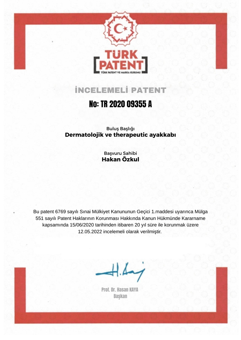 Comfo Feet taban teknolojisi, Türk Patent ve Marka Kurumu tarafından onaylı incelemeli patent kapsamında geliştirilmiştir.