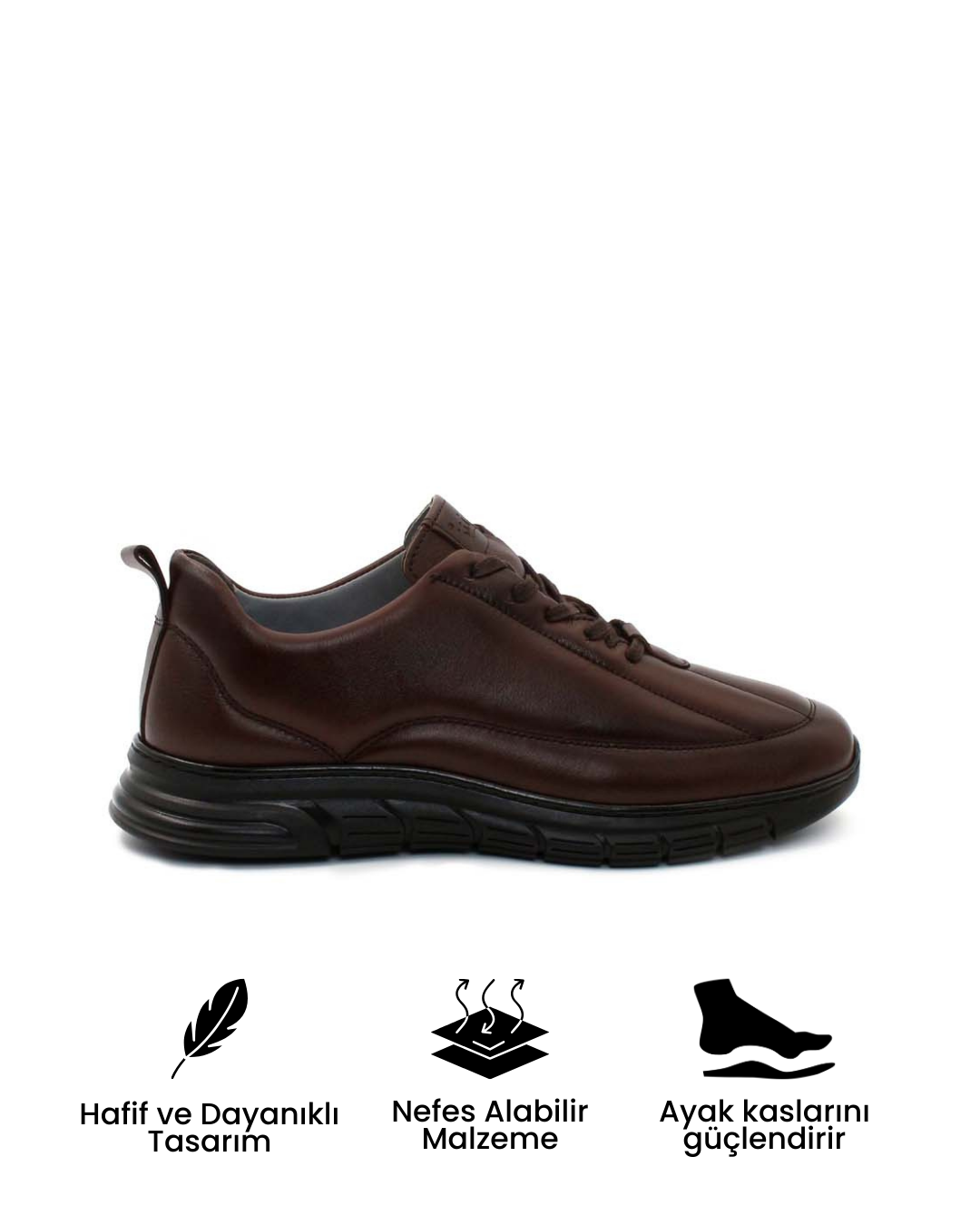 Doğal gözenekli hakiki deri sayesinde ayaklarda terleme, koku ve sıkışma hissi azaltılır; gün boyu ferahlık sağlar.