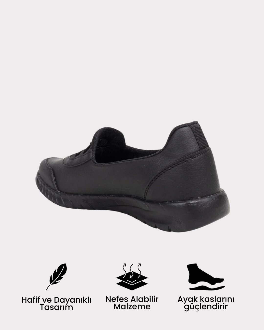 Ayak anatomisine uygun iç tabanı ile gün boyu ağrısız ve konforlu yürüyüş sağlar.