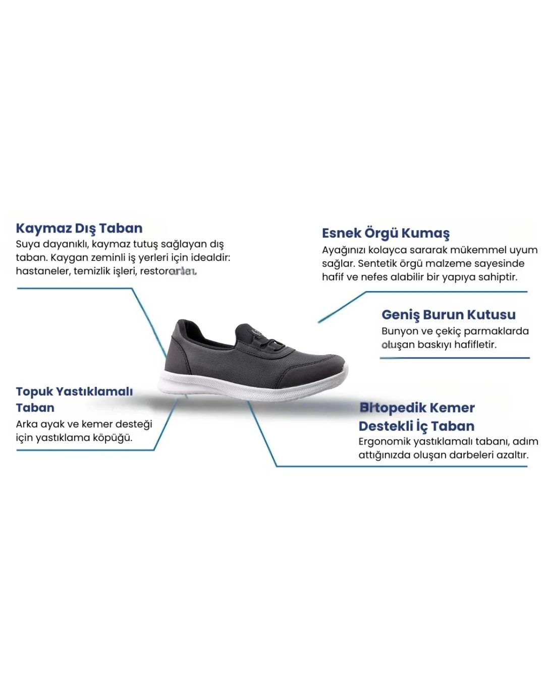 Özel geliştirilmiş ortopedik taban teknolojisi ile her adımda masaj etkisi yaratın. Topuk dikeni, düz tabanlık ve eklem ağrılarını hafifletmek için tasarlandı. Sağlığınız için en doğru adımı şimdi atın